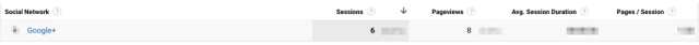 Over the course of a year, we received six — yes, six — visitors from Google Plus. Here are the stats so you can see it for yourself: